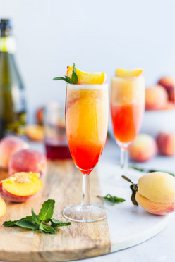 This is summer in a glass. Fresh peach puree meets crisp Brut sparkling wine...
